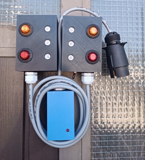 Montaža signalne rasvjete na priključno vozilo ostvarena je jakim stalnim magnetima. Baza je izvedena kao standardni europski priključak sa 7 pinova. Punjenje baterijskog napajanja je preko USB-C priključka.