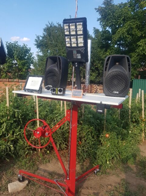 Mobilni agro-toranj jest inovacija koja omogućava tehničku podršku za različite metode u području elektrokulture. Ovaj toranj, kao oslonac, može podržavati slijedeće komponente: